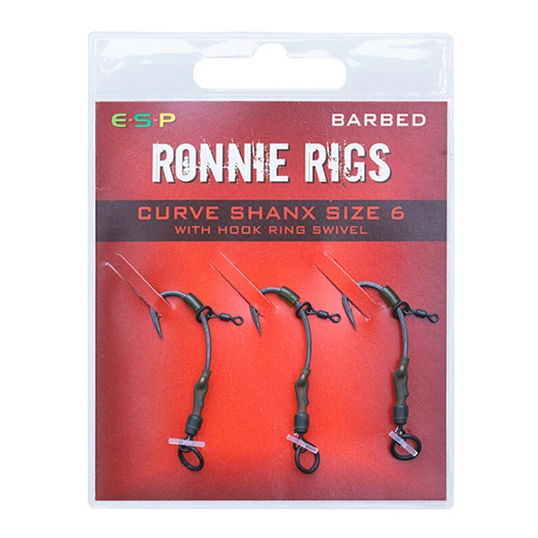 De ESP Ronnie Rigs zijn perfect voor het vissen met pop-ups. Aan deze onderlijnen hoeft enkel nog een Boom Section geknoopt te worden en ze zijn klaar voor gebruik. De Ronnie Rigs zijn voorzien van ESP Curve Shanx haken en ESP Quick Change Ronnie Swivels.