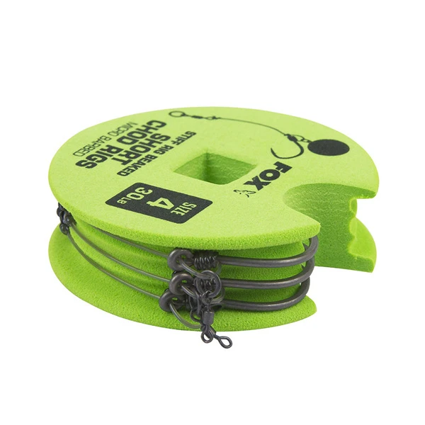 De FOX Edges Short Chod Rigs zijn hoogwaardige kant-en-klare rigs voor het vissen met een chod systeem. Deze onderlijnen zijn voorzien van een FOX Stiff Rigs Haak en gemaakt van FOX Rigidity Trans Khaki Stiff Monofilament. De FOX Edges Chod Rigs worden geleverd op een handige dispenser.