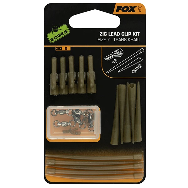 De FOX Edges Zig Lead Clip Kit is speciaal ontworpen voor het vissen met een Zig Rig. Deze set wordt geleverd met Zig Lead Clips, Tail Rubbers, Anti Tangle Sleeves en Ball Bearing Swivels. Dankzij de Ball Bearing Swivels komen er minder snel kinken in de lange nylon onderlijn. Daarnaast heeft de Lead Clip een ‘slik’ afwerking, dit zorgt ervoor dat het lood gemakkelijker los komt.Â