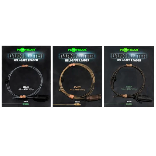 De Korda Dark Matter Heli-Safe Leader is een kant-en-klare leader voor het vissen met een helikoptersysteem en is voorzien van het populaire Heli-Safe systeem. Deze veilige loodclip maakt het mogelijk om het lood, indien gewenst, te verliezen tijdens de dril. Ideaal wanneer er gevist wordt in wierrijke of obstakelrijke wateren.Â