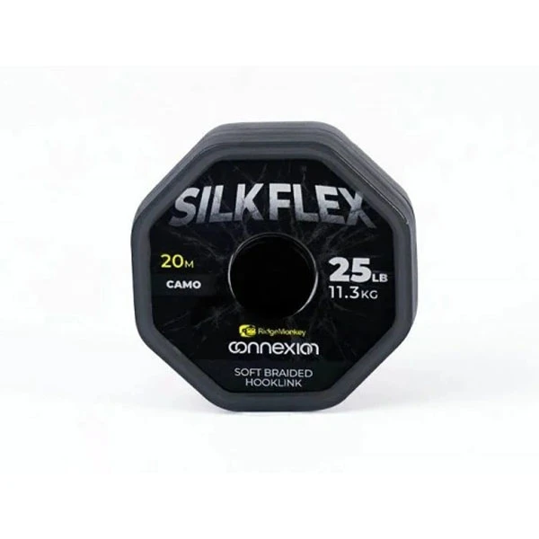 De Connexion Silkflex Soft Braid Hooklink van RidgeMonkey is zeer soepel onderlijnmateriaal, hierdoor volgt het perfect de contouren van de bodem. Daarnaast beschikt dit onderlijnmateriaal over een hoge slijtvastheid en het is voorzien van een onopvallende kleur. De Connexion Silkflex Soft Braid Hooklink is perfect te gebruiken voor het vissen met Solid PVA Bags of voor het soepele gedeelte van een Combi Rig.